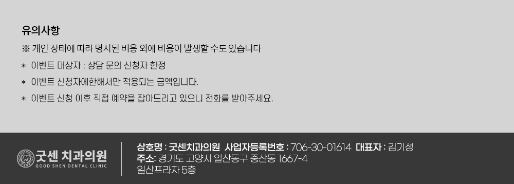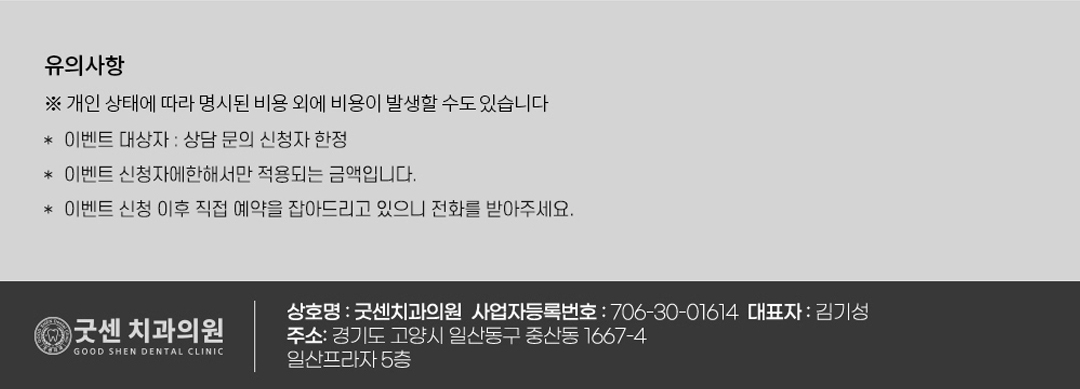 <개인정보 취급 위탁> 1. 개인정보를 제공받는 자 : 굿센치과의원 및 주식회사 라온 알에이치비