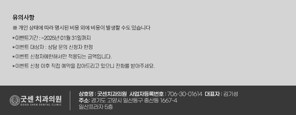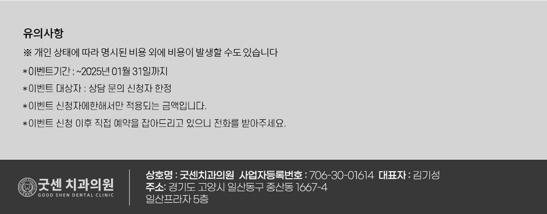 <개인정보 취급 위탁> 1. 개인정보를 제공받는 자 : 굿센치과의원 및 주식회사 라온 알에이치비